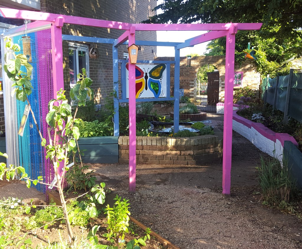 This has been one of our longest and most demanding projects. It began when a teacher from Kingfisher School approached Rosemary in Spring 2018. At that stage, the garden was unusable, overgrown with toxic weeds and unsafe surfaces.
