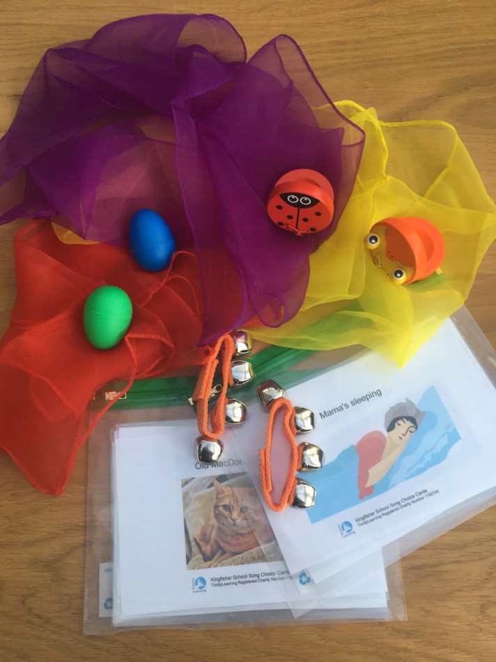 Our first pack for children at Kingfisher school is based around music and provides colourful scarves, bells and shakers to wave and play along with the rhymes and songs our volunteer Kingfisher Singing group are beginning to video to allow children and their parents to access them from home. These children all have significant needs and limited mobility so the resources are carefully selected to be suitable, and fun for them. More details about the packs are available on our website at https://trinitylearning.org.uk/.