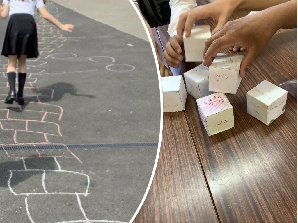 Physical exercise – Tuesday’s workshop got us moving! We used balls, timers, ropes, chalk and more to make up games, set ourselves goals to beat and generally get exercising. The pupils made exercise cubes/dice which they could use to boost their mood through physical exercise anytime they needed to.