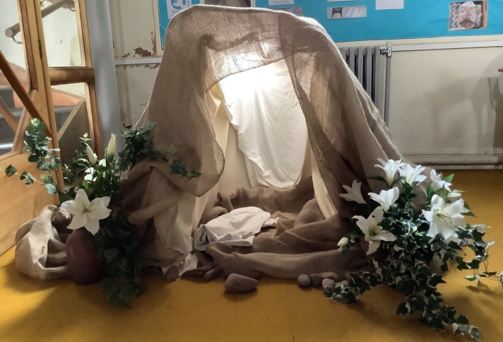 Each class of children that visits will work their way through the stations in order of the Easter story which means when we set up, we are able to leave more of the church looking as it usually would. This enables children and teachers to also really